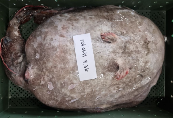 흑산도 부근에서 어획되어 바코드 없는 흑산도 홍어 입니다.