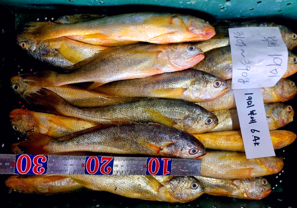 건조 100미 참조기 3마리 35,000원 (추가시 3마리당 30,000원)