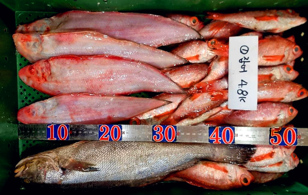 생물 장대 마리당 600g 내외, 40cm~45cm 정도의 크기입니다.