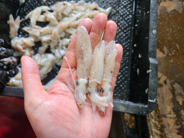 오늘 아침에 위판된 싱싱한 생물 호래기입니다.