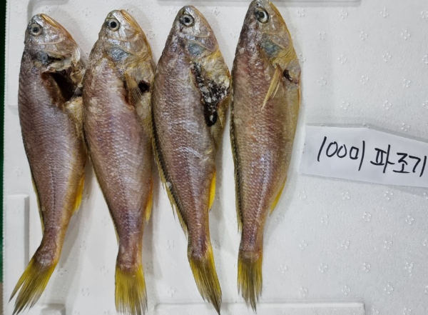 건조 100미 파참조기 5마리 45,000원 (추가시 마리당 8,000원)