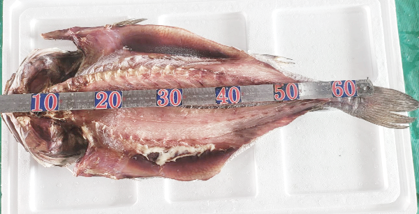 생물일때 1.7kg 내외, 50cm 이상의 크기입니다.