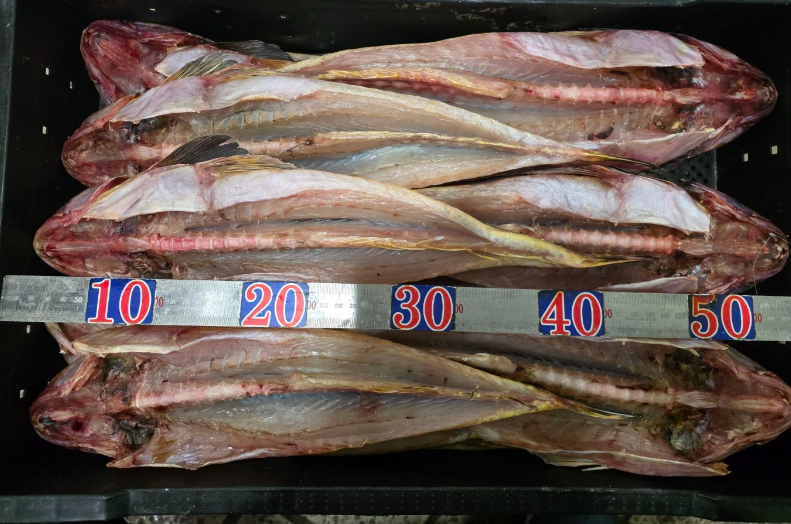 | 참조기 사이즈 구분 참조기는 기계로 크기별 선별 후 상자 작업되어 위판됩니다. 👉 한 상자 무게는 약 15.5kg 내외이며, 마릿수가 적을수록 크기가 크고 가격도 높습니다. ⚖ 1마리당 무게 기준 ▶ 100미 참조기 : 133~186g ▶ 120미 참조기 : 118~125g ▶ 140미 참조기 : 103~116g ▶ 160미 참조기 : 86~105g ▶ 180미 참조기 : 84~96g ▶ 깡치 참조기 : 73~87g ▶ 소깡치 참조기 : 64~76g 👉 즉, “100미 참조기”라 하면 한 상자에 약 100마리 정도 들어있다는 뜻입니다. 👉 크기가 클수록 살이 도톰하고 맛이 좋아 명절 선물이나 굴비로도 많이 사용됩니다. |