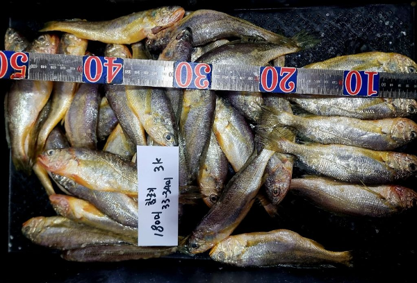 건조 100미 참조기 3마리 35,000원 (추가시 3마리당 30,000원)