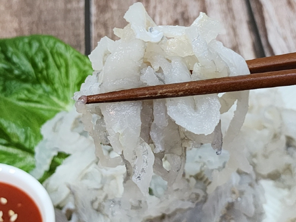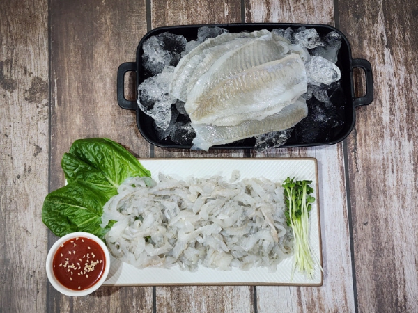 껍질과 뼈 제거된 필렛 상태로 보내드리기 때문에 도톰하게 썰면 회로, 길게 채 썰면 물회로 완벽합니다.