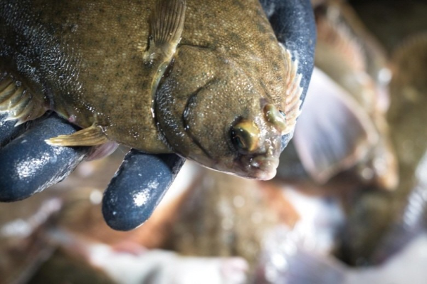 A. 살아서 팔딱거리는 도다리만 포장합니다.