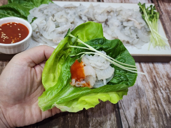 비린맛 없이 담백하고 단맛 도는 살집이 특징입니다.
