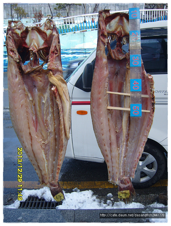 건조 大민어 현재 건조중이구요, 며칠전에 매입하여 횟감 가능한 신선도 일때 건조 하였습니다.