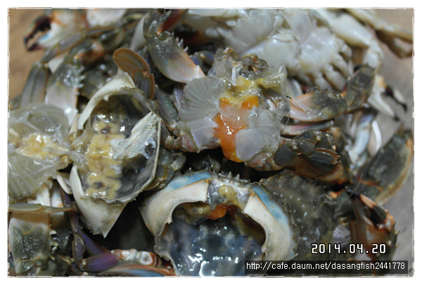 어제 저녁 반찬으로 시식 겸 돌게 무침을 하였습니다. 냉동 돌게를 손질한 상태입니다.