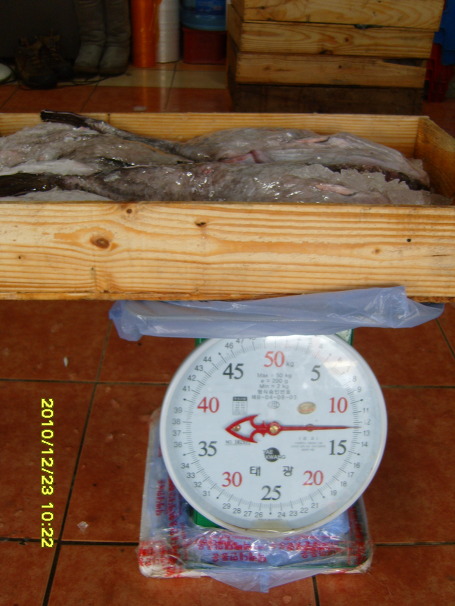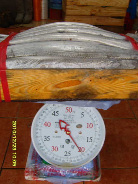 중갈치 한 상자의 무게입니다.