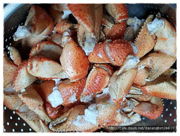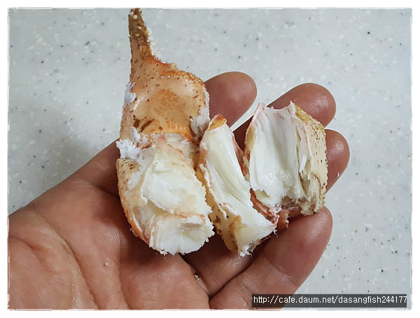 시식해 보았습니다. 소라게발 살이 가득 들어 있네요~
