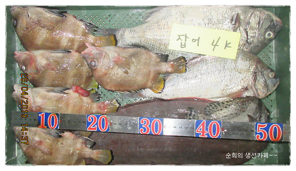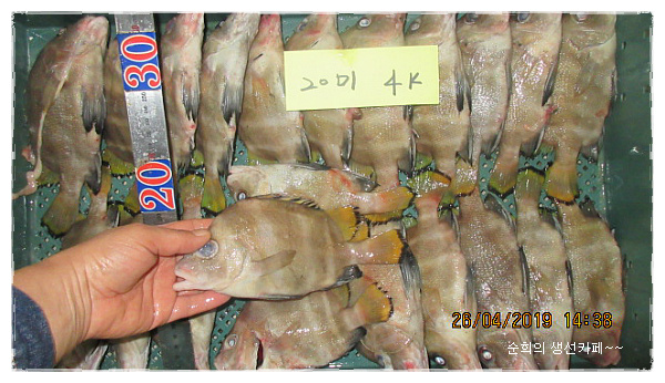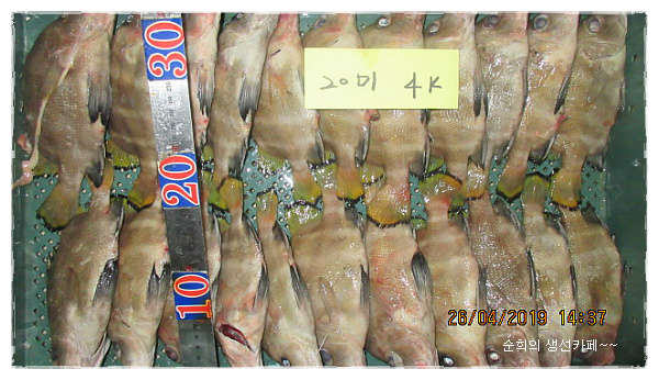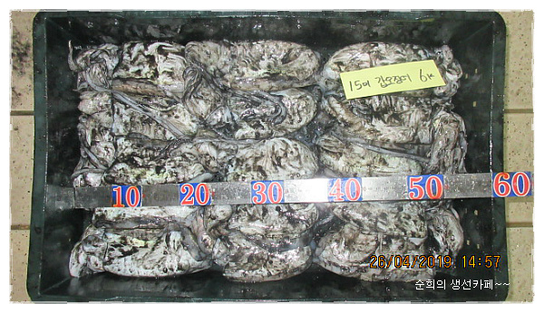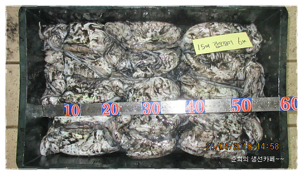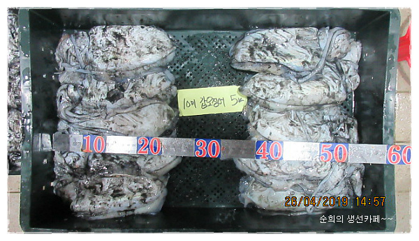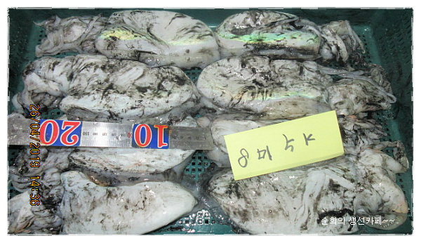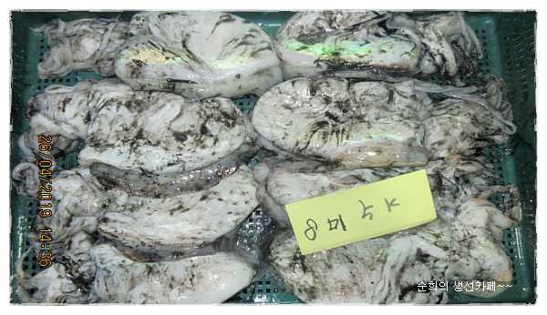 ※요즘 갑오징어를 손질해보니 알이 들어 있네요. 산란해버리면 얇아지므로 요즘 갑오징어 상태가 두껍고 가장 좋을때인거 같습니다. 8미5kg 大갑오징어 마리당 625g 정도로 굵습니다. 회로 드실수 있는 신선도입니다. 한 박스 88,000원 반 박스 49,000원 10미 5kg 갑오징어 마리당 500g 정도로 씨알이 좋습니다. 회로 드실수 있는 신선도입니다. 한 박스 80,000원 반 박스 45,000원 (판매완료) 15미 6kg 갑오징어 한 박스 80,000원 반 박스 (7마리) 40,000원 송도잡어 (딱돔,감성돔,서대 -4kg) 54,000원 20미 4kg 딱돔 60,000원 (판매완료) 활광어 살집이 있는 광어로 선택하여 매입하였습니다. ①kg당 12,000원 (손질.택배 10,000원 별도)