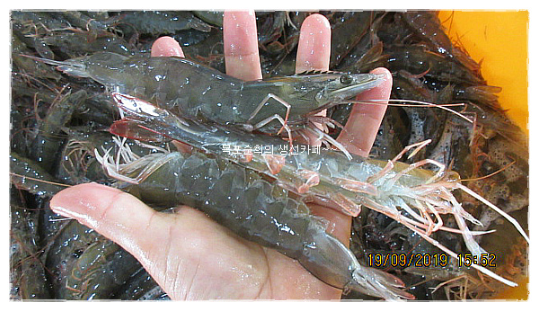 ※자연산 대하와, 흰다리새우를 눈 감고 시식했을때 전문가도 구분이 모호할 정도로 새우의 단맛과 감칠맛이 차이가 없다고 합니다. 자연산 대하는 성질이 급하여 잡히면 바로 죽어버리므로 활어로 만날수가 없지만, 흰다리 새우는 싱싱한 활어 상태로 입고 되고 바로 포장하여 보내드리므로 회나 초밥으로 가능할 정도의 신선도입니다. 싱싱한 제철 새우의 통통함이 단맛과 감칠맛으로 이어지고, 적당히 익혀서 드시면 탱탱한 육질의 맛을 느끼실 수 있습니다. 새우초밥, 소금구이, 새우찜, 새우장, 새우전 등등 다양한 요리를 즐기실 수 있습니다. ※ 새우의 영양: 새우는 저칼로리 고단백 식품으로 자양강장제라 할 만큼 스테미너 식품이고, 어린이 성장에 좋으며, 비타민이 풍부하여 성인병 예방, 단백질과 칼슘이 풍부하여 뼈 건강에 도움을 주어 골다공증이나 골연화증 예방에도 좋다고 합니다. 특히 껍질에 다량 함유된 키토산은 항암효과와 노화 예방에도 좋은 먹거리입니다. 새우요리 모음글입니다.~~ ♥ http://cafe.daum.net/dasangfish2441778/V5iZ/127 ♥ http://cafe.daum.net/dasangfish2441778/MPQP/896 ♥ http://cafe.daum.net/dasangfish2441778/MPQP/902 64미16kg 中小먹갈치 기본손질하여 냉동보관하였습니다. 16kg 한정할인판매 한 상자(16kg) 146,000원 반 상자(8kg ) 78,000원 6석 참조기 한 상자에 100마리 15kg이고 마리당 22~23cm 정도입니다. 25마리씩 포장하여 냉동하였습니다. 50마리 한정판매50미 7.5kg 반 상자 400,000원 25마리 3.75k 205,000원 건조 7석 파조기 (135미.15kg) 20~21cm 정도의 크기입니다. 정상 7석 참조기 건조 작업중에 배가 터진거를 파조기로 판매합니다. 300마리 한정판매 30마리 55,000원 (추가시 30마리에 50,000원) (판매완료) 6석 파조기 16마리 한정판매 60,000원 정상 6석 참조기 건조 작업 중에 흠집이 생겼습니다. (판매완료) 중하새우(냉동) 껍질이 부드러우므로 수염만 잘라내시고 껍질째 조리하셔도 좋습니다. 여러 음식에 곁들이면 더욱 맛있어지고, 새우만 조리하셔도 맛있습니다. 명절에 전감으로 사용하셔도 좋아요~ 6kg 한정판매 3kg 25,000원 (추가시 3kg 20,000원) 파랑새야님의 '중하새우파스타' http://cafe.daum.net/dasangfish2441778/MPQP/1291
