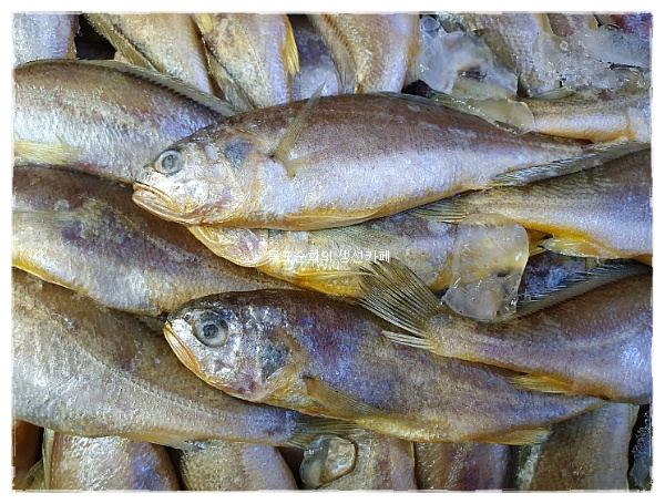 냉동.뺑돌이 참조기 (8석 참조기. 20kg,240여 마리) 씨알이 고르고 19~20cm 정도의 크기입니다. 20kg 한 상자 210,000원