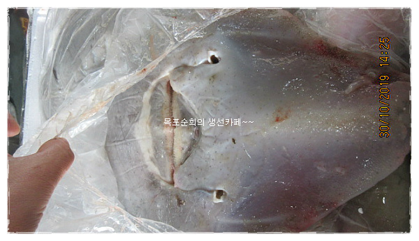마른멸치님의 '새우볶음밥' http://cafe.daum.net/dasangfish2441778/MPQP/468 소소의 '중하새우덮밥' http://cafe.daum.net/dasangfish2441778/MPQP/1657 대청도 암치홍어 직접 숙성하여 드시면 좋습니다. 도막 손질하여 소포지나 해동지에 싸서 밀폐용기에 담아 저온에서 서서히 숙성하면 더 맛있게 드실수 있습니다. 회손질 할 시간이 없으므로 도막 손질만 주문 받습니다. kg당 20,000원 (도막손질.택배 7,000원 별도) 10.3 / 9.4 / 9.3 / 9.5 / 12 / 11(1/2 riajjang1님 + 1/2꽃삔님) / 10.6 / 10.4 / 7.5 / 9.5 / 11.3 싱싱할때 도막 손질로 받으셔서 애부터 한점 참기름에 냠냠해주고요 남은 건 나중에 홍어탕에 넣으면 구수한 맛이 배가됩니다~