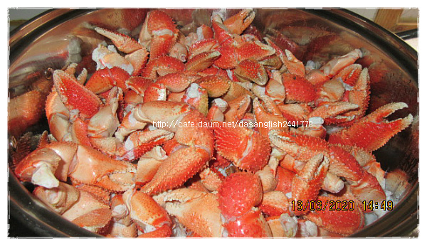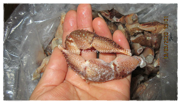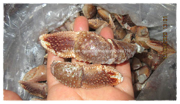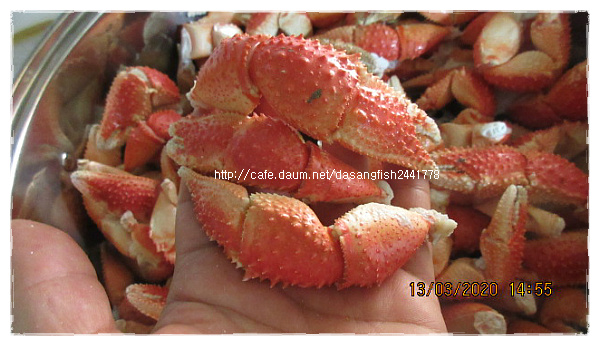 *정아60님의 大문어 삶기~ http://cafe.daum.net/dasangfish2441778/Maza/7211 *흑까님의 처음해본 문어찜 문어회 http://cafe.daum.net/dasangfish2441778/MPQP/2017 문어 삶는 방법 : 문어 내장을 제거하시고, 문어 빨판 사이사이 불순물과 남아있는 점액을 제거하고 흐르는 물로 씻어줍니다. 다 익은 문어는 충분히 식을때까지 찬물에 넣어두면 활간제미(산지발송) 제철을 맞이하여 가장 맛있는 시기입니다. 회무침이나 횟감으로 봄철 입맛 찾으세요~ 1마리에 600~700g 정도의 크기이고 껍질 제거 손질하여 보내드리므로 횟감이나 회무침으로 드실수 있습니다. 산지 발송해드립니다. 5마리 35,000원 10마리 65,000원 ※봄의전령사- 황가오리와 간제미요리 모음 http://cafe.daum.net/dasangfish2441778/V5iZ/123 활암꽃게 (산지발송) 제철을 맞이하여 1년중 가장 맛있는 시기입니다. *집게발 떨어진 활암꽃게 kg당 3~4마리 크기입니다. 2kg 81,000원(추가시 kg당 38,000원) .................................................................... *냉동 암꽃게 알배기 활암꽃게로 냉동하였고 kg당 3~4마리 정도의 크기입니다. 2kg 71,000원 (추가시 kg당 33,000원) http://cafe.daum.net/dasangfish2441778/V5iZ/7 http://cafe.daum.net/dasangfish2441778/V5iZ/128 냉동문어(산지발송) 크기는 섞여있고 발 떨어진게 있을수 있습니다. *냉동문어 10kg 110,000원(택배비 포함) 금게(깨다시꽃게)(산지발송) 껍질이 부드러워서 껍질째 튀겨 드셔도 되고 딱딱하지 않아서 양념 무침, 금게탕으로도 부담 없이 드실수 있는 장점이 있습니다. 꽃게 보다는 살이 무른편이라서 배송중에 상태가 안좋아 질수 있으므로 냉동하여 보내드립니다. 中小금게 크기로 많이 작지 않습니다 kg당 5~7마리 입니다. 25일 급냉하였습니다. ※ 활금게로 냉동하였습니다. 몸통만 양념무침이나, 탕용으로 좋습니다. 금게 5kg 35,000원 금게 10kg 65,000원 이렇게 손질.소분하여 냉동보관하세요~ 양념무침이나 반찬용으로 손질하실때 금게 뚜껑은 먹을게 없으니 버리세요~ http://cafe.daum.net/dasangfish2441778/Maza/4189 http://cafe.daum.net/dasangfish2441778/MPQP/1134 소라게발 (냉동) 씨알이 섞여있습니다. 2kg당 31,000원 (추가시 2kg당 26,000원) 소라게발 먹는 방법 살이 가득 들어 있습니다. 소라게발 이야기~~ 소라 껍질안에서 사는 발이 큰 게인데요 어획하면 발만 떼어내고 다시 바다속에 넣어주면 또 발만 키워서 잡히기를 반복한답니다... *건조갈치 갈치를 전문으로 건조하는 업체에서 건조한 갈치입니다. 손질이 깔끔하고 반 갈라서 건조되었습니다. 반 건조 상태이므로 받으시면 반 나절 정도 더 건조하시면 조림하실때나 구우실때 살이 흩어지지 않습니다. * 건조 띠 4마리 묶어서 20묶음(6kg) 입니다. 20묶음(80마리) 66,000원 10묶음(40마리) 38,000원 *中大자반고등어 고등어 자반 전문 업체에서 작업하였고, 굵은 고등어로 자반 손질작업하여 냉동하였습니다. 20손(40마리) 한박스 76,000원 10손(20마리) 반 박스 43,000원 5손(10마리) 26,000원 (5손 무게는 3.5kg 전.후입니다.)