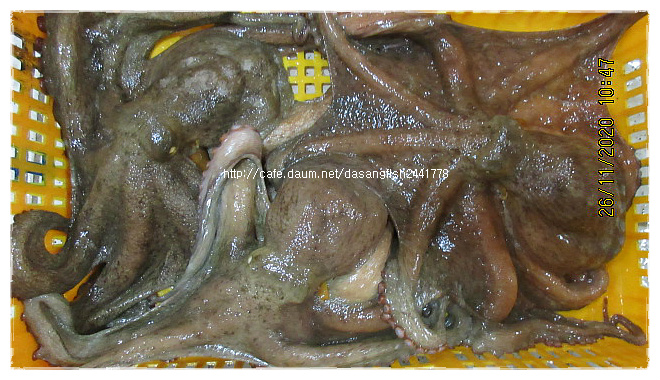 각굴(양식-여수) 찜,구이로 드세요~ (각굴은 다른 품목과 합포장을 할 수 없습니다.) 10kg한 망에 23,000원 (합포장이 안되는 품목입니다.) 찰감태 (11시 이후 주문량은 4일 발송해드립니다.) 쩍이 거의 없고 부드러운 찰감태입니다. 감태향이 진하여 맛있습니다. & 감태 보관방법은 1회 분량씩 소포장하여 찧은 마늘 얼리듯 넙죽하게 펴서 냉동보관 하시거나, 건조하여 사용하셔도 됩니다. & 먹는방법은 1) 깨끗한 물로 가볍게 헹구어줍니다. 생감태의 물기를 너무 제거하면 감태의 향이 없어진답니다. 감태를 작업하는 곳에서 깨끗하게 씻어서 작업을 하므로 조리하실때 씻지 않아도 되고, 혹시라도 있을 이물질을 제거하신 후 그냥 조리하시면 더 진한 향을 느끼실 수 있습니다. 2) 가위로 뭉치지 않게 적당히 썰어주고, 3) 기호에 따라서 소금, 멸장, 집간장으로 간을 하고, 참기름, 참깨를 첨가합니다. 요리법은 각자 다르겠지만, 저희 식구들은 감태의 향을 살리기위해서 마늘, 파 등의 향이 진한 부재료는 넣지 않습니다. (집간장에 숙성 후 양념하셔도 됩니다.) &감태의 효능은 항산화효과가 다른 갈조류에 비해 폴리페놀 성분이 10배 이상이고, 타닌계 성분은 숙면과 불면증에 도움을 주고 뇌세포 회복에도 효과가 있어 치매예방에 좋고, 칼슘이 많아 골다공증완화, 면역력 향상에도 좋고, 고혈압, 당뇨에도 좋다고 검색되네요~~ ※감태는 실온에 이틀 정도 지나면 후숙되어 더욱 향이 진하고 부드럽습니다. 오래 두고 드실량은 소분하여 냉동 보관하세요~~ 감태 5k 27,000원 감태 10k 48,000원 민물새우 3일 활어상태로 입고됩니다. 영산강과 바다가 근저접한 곳에서 어획됩니다. 흔히 알고 계시는 민물 토하젓은 아닙니다. 생으로 무침하여 드셔도 맛있고, 김장용으로 사용하셔도 좋습니다. 민물새우(생물) 2kg 39,000원 ( 2kg당 34,000원) 닭도리탕님의 민물새우젓 http://cafe.daum.net/dasangfish2441778/MPQP/2576?svc=cafeapi 대청도 암치홍어 대청도 홍어는 주낙으로 어획하므로 자연적으로 시메가 되어 그물로 어획하는 홍어보다 더 좋습니다. kg당 20,000원 (도막 손질.택배 10,000원 별도) (반 마리 주문시에도 도막 손질.택배 10,000원 별도) 9.6 / 9.7 / 10.6 /10.8 / 9.4 / 10.5 / 9.8 / 9.8 / 10.2(1/2) .......................................................................................... 12월 2일 입고 생물암치홍어 9.8(김병석님) / 8.5 / 11(1/2가테님 + 1/2?) / 8.9 / 9.6 ※숙성할때는 껍질이 붙어있는 상태에서 숙성하여야 좋습니다. -껍질 제거 손질을 원하실 경우에는 댓글에 남겨주세요.