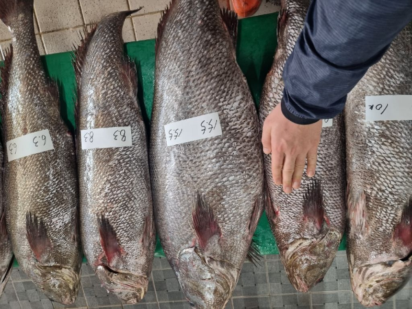 | 오늘 목포수협 선어판장에는 유자망 9척 어선이 참조기, 먹갈치, 고등어를 위판하였습니다. 선어판장에서는 매입한 생선이 없고 활어판장에서 선어민어만 매입하였습니다. |