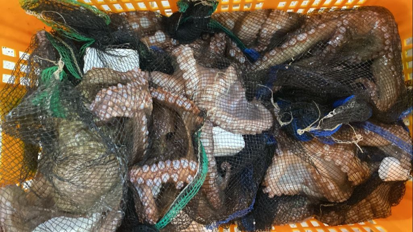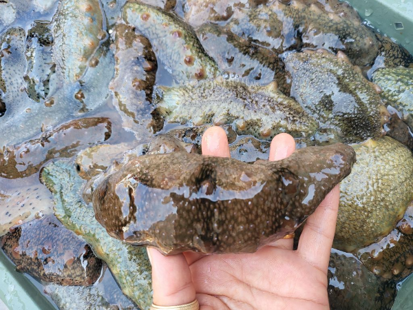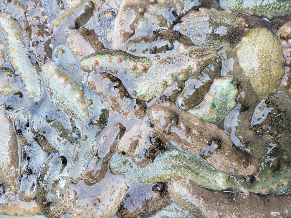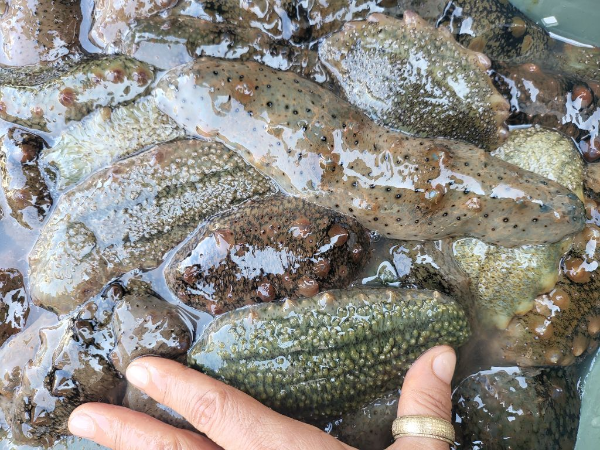 흑산도 해녀들이 어획한 굵은 해삼입니다.