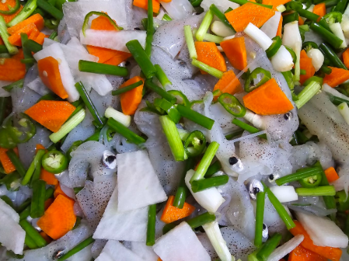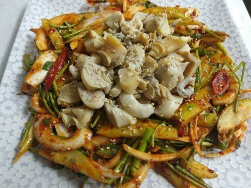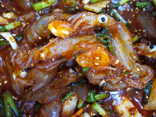 당일 조업한 싱싱한 꼴뚜기로 무침하였습니다.