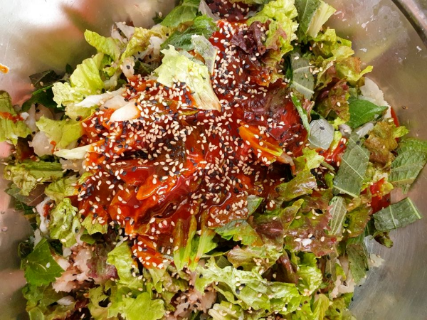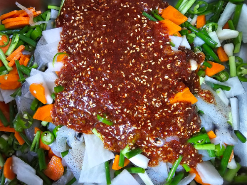 막걸리 식초가 어울리며 입맛에 맞게 양념을 추가하세요~