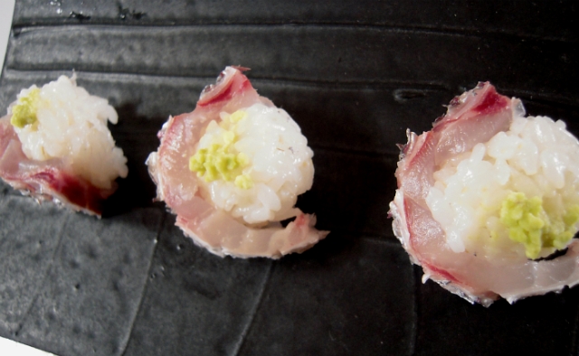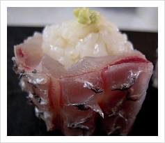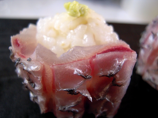 여유있게 돔의 각 부위를 회로 즐긴 후에는 초밥에 도전해 봤습니다. 오늘은 껍질롤초밥~ 저번 농어껍질 초밥 후 껍질롤초밥에 푹 빠져 이거저거 시도해 보는 중이랍니다. 먹어보니 참돔 뱃살맛이 그 중 압권이더군요!