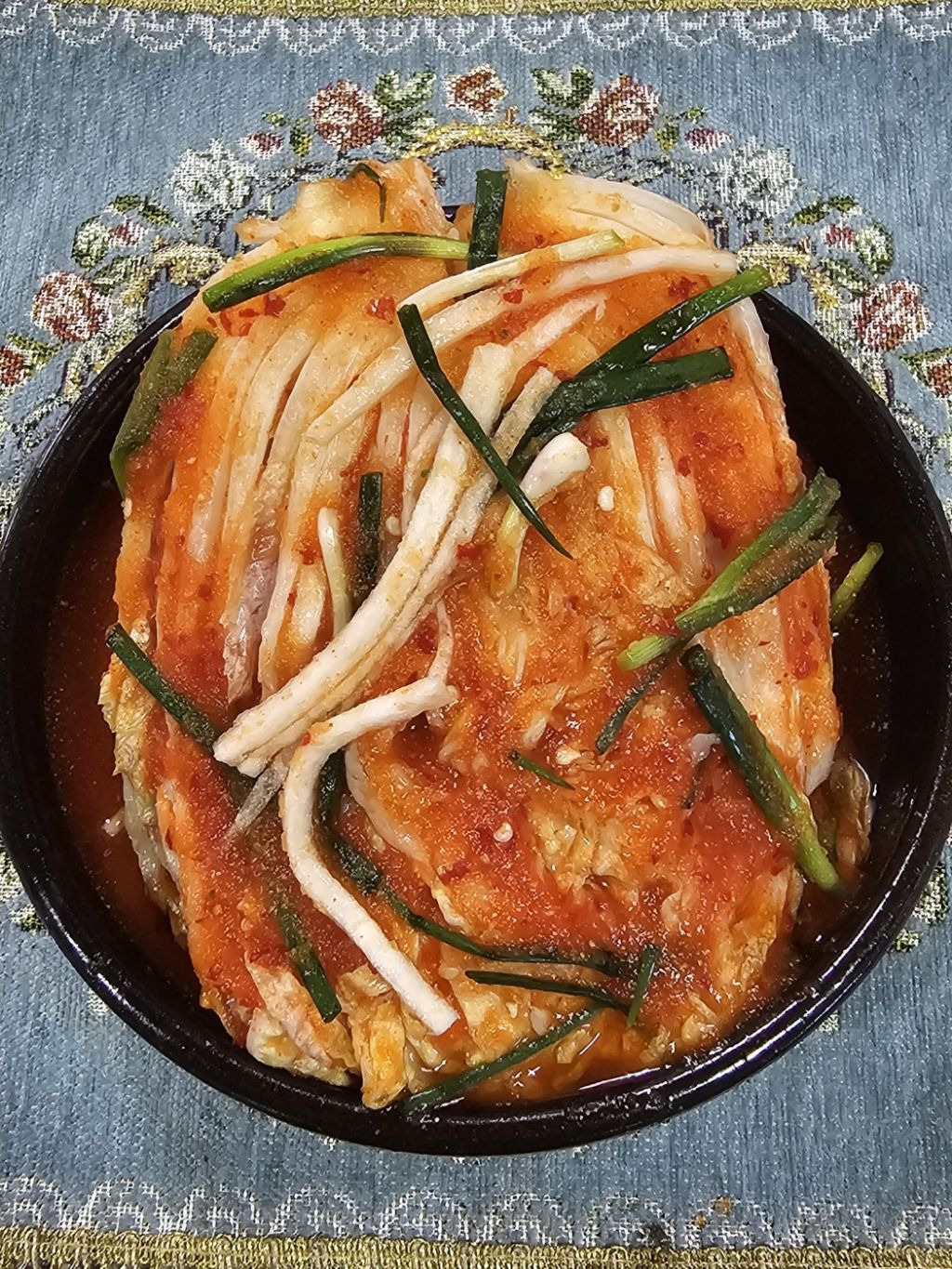 물김치와 배추김치의 중간 정도의 물김치입니다.