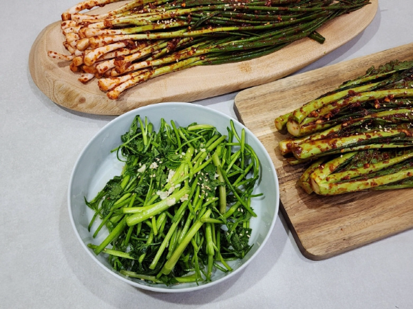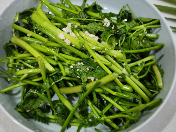 미나리를 데친 뒤.