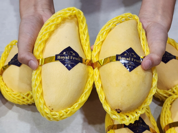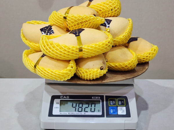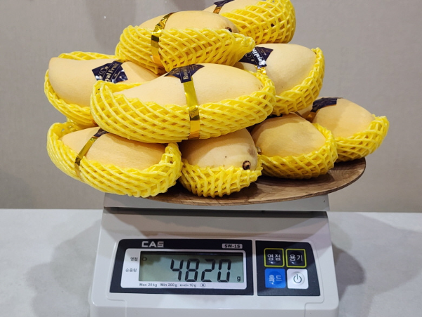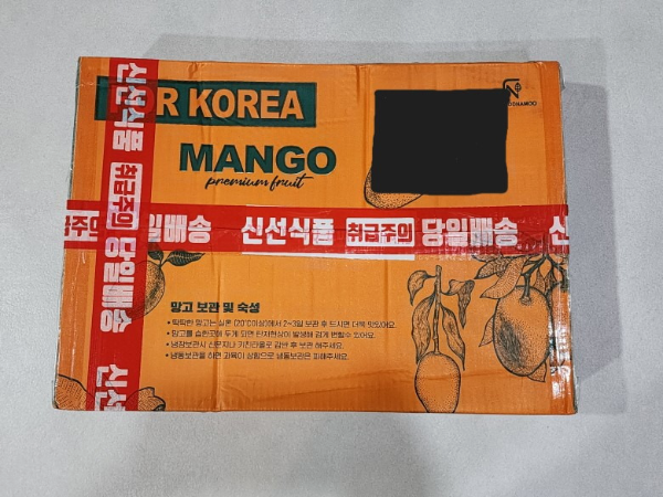 망고는 현지에서 재배 후 상품화 과정을 거치고 5kg 박스에 담겨 수입이 됩니다.