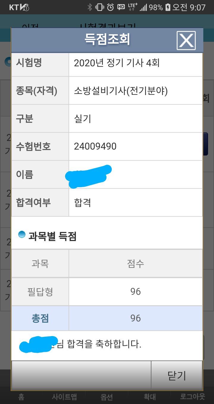 다산에듀 최종인 교수님, 이재현 교수님 강의로 1년 6개월 걸려 전기기사 실기시험이후 합격 발표전에 허전한 마음에 소방전기에 입문했습니다. (전기기사 최종합격)