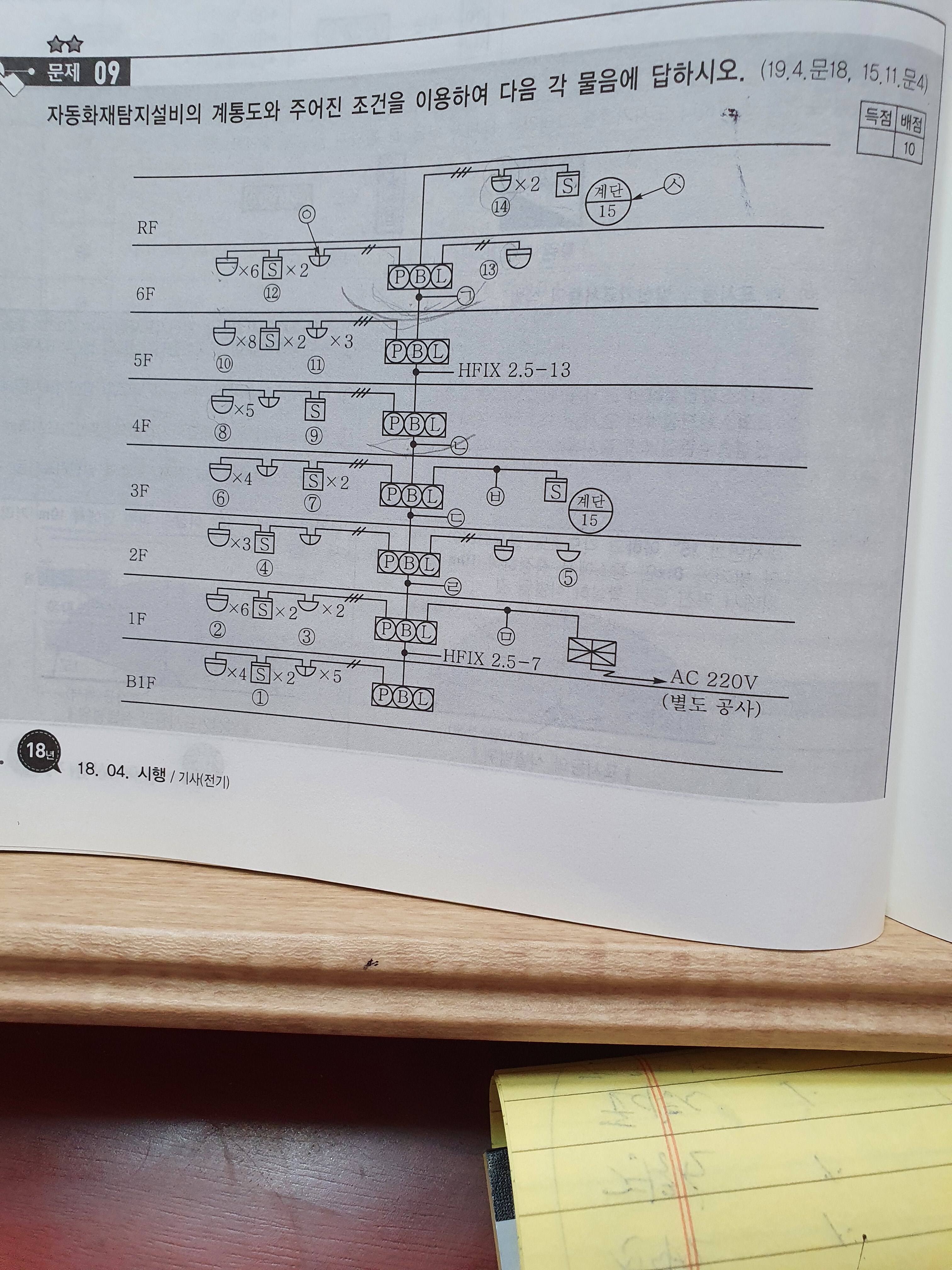 문제 가)의 동그라미 "ㄱ"과"ㄴ"에서 회로선가닥이 왜 각각 4.8가닥인지 모르겠습니다