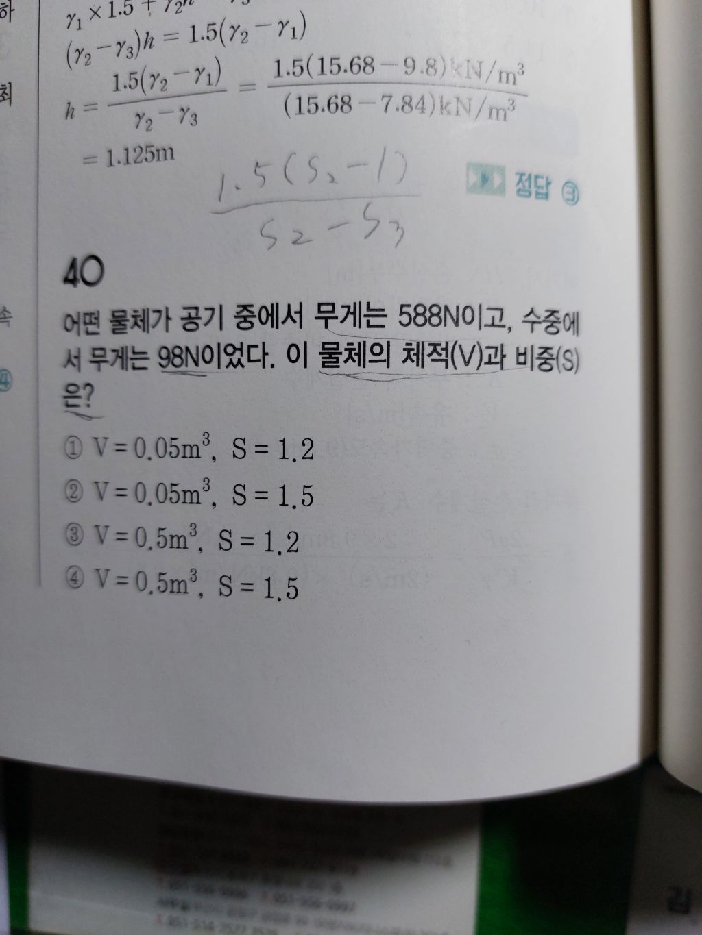 비중s를 구할때 W2는 왜? 공기중 무게 588만을 적용하는지 궁금합니다.