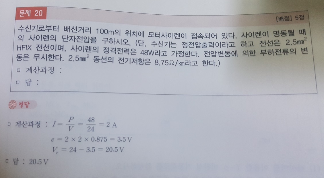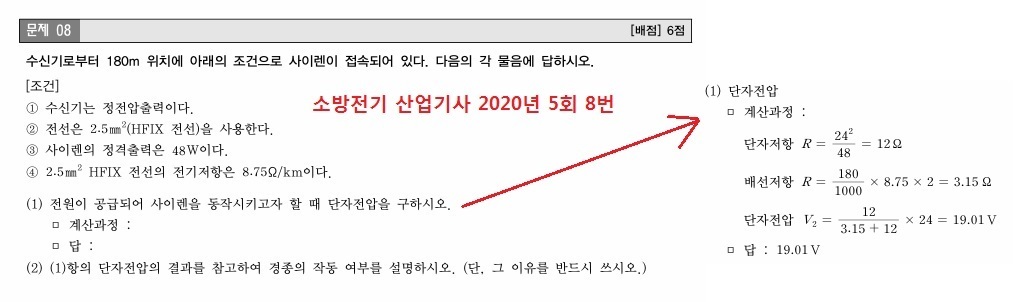 소방전기기사 17년 / 20문제와 소방전기산업기사 20년 5회 8번 문제 작성자육각형|작성시간21.04.12|조회수550 목록 댓글 1 글자크기 작게가 글자크기 크게가 소방전기기사 17년 문제20와 소방전기산업기사 20년 5회 8번 문제 풀이 과정이 틀린데 어떤 기준을 가지고 풀이 과정을 선택해야 되는지 궁금합니다. 다음검색 현재 게시글 추가 기능 열기 북마크 공유하기 신고 센터로 신고 댓글 댓글 1 댓글쓰기 답글쓰기 댓글 리스트 작성자소방담당교수 | 작성시간 21.04.12 문제의 조건에 "전압변동에 의한 부하전류의 변동은 무시한다."라고 나와 있으면 단자전압은 입력전압에서 전압강하를 빼서 구할 수 있습니다. 그렇지 않은 경우에는 전압분배법칙으로 계산하시면 됩니다. 댓글 전체보기