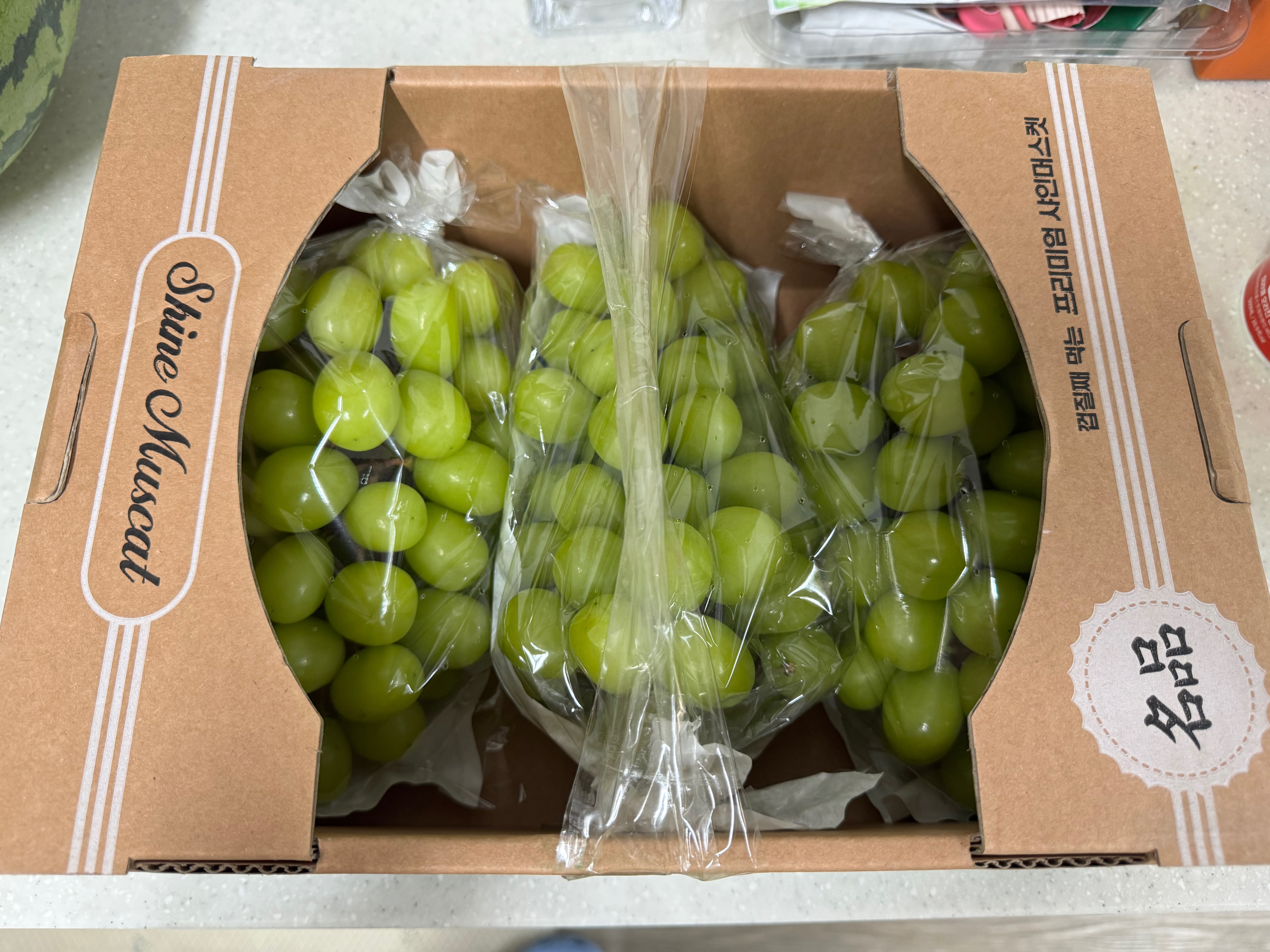 이용인들이 간식으로 샤인 머스켓과 수박을 먹으며 매우 행복해 할 것 같네요!