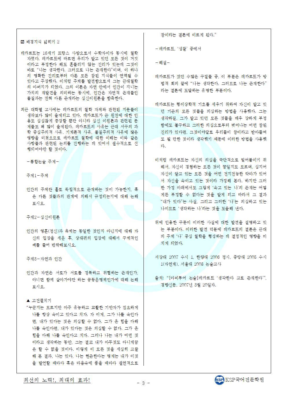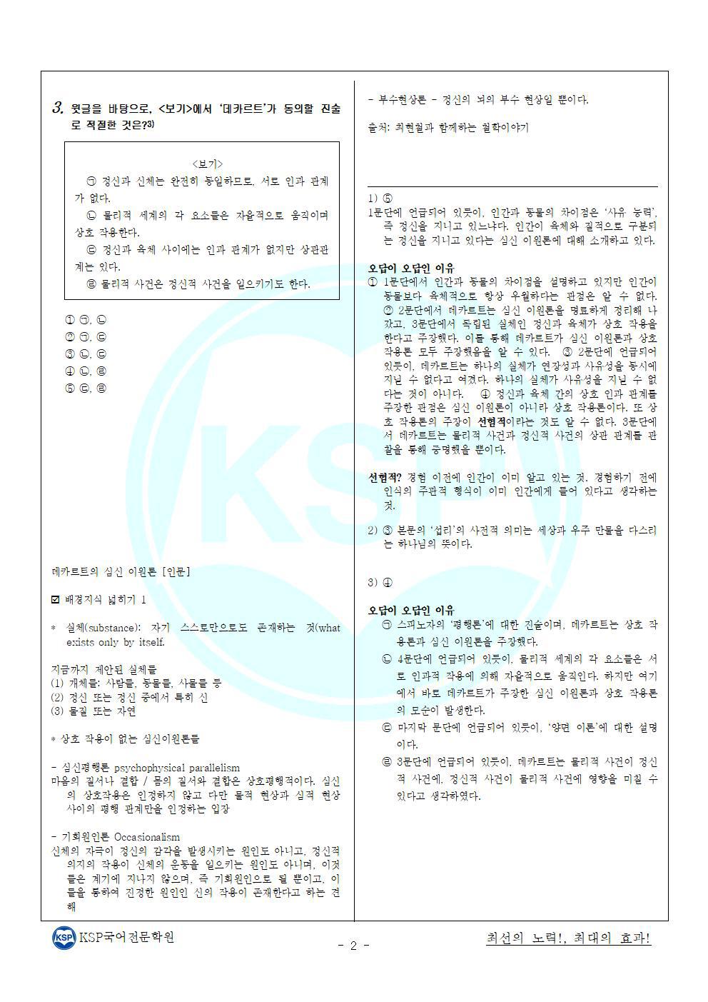수능특강, 수능완성, 모의고사, 수능 독서 변형 문제 견본(데카르트의 심신 이원론_2020학년도 수능특강) 작성자KSP원장|작성시간20.01.29|조회수867 목록 댓글 0 글자크기 작게가 글자크기 크게가 (인문) 데카르트의 심신 이원론-3제(534. 2020 수특 개념 학습 3)001.jpg (인문) 데카르트의 심신 이원론-3제(534. 2020 수특 개념 학습 3)002.jpg (인문) 데카르트의 심신 이원론-3제(534. 2020 수특 개념 학습 3)003.jpg 첨부파일첨부된 파일이 6개 있습니다. jpg 파일 (인문) 데카르트의 심신 이원론-3제(534. 2020 수특 개념 학습 3)001.jpg 다운로드 jpg 파일 (인문) 데카르트의 심신 이원론-3제(534. 2020 수특 개념 학습 3)002.jpg 다운로드 jpg 파일 (인문) 데카르트의 심신 이원론-3제(534. 2020 수특 개념 학습 3)003.jpg 다운로드 jpg 파일 (인문) 데카르트의 심신 이원론-3제(534. 2020 수특 개념 학습 3)001.jpg 다운로드 jpg 파일 (인문) 데카르트의 심신 이원론-3제(534. 2020 수특 개념 학습 3)002.jpg 다운로드 jpg 파일 (인문) 데카르트의 심신 이원론-3제(534. 2020 수특 개념 학습 3)003.jpg 다운로드 다음검색 현재 게시글 추가 기능 열기 북마크 공유하기 신고 센터로 신고 댓글 댓글 0 댓글쓰기 답글쓰기 댓글 리스트