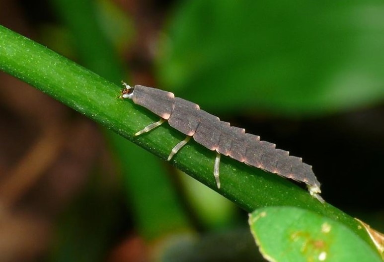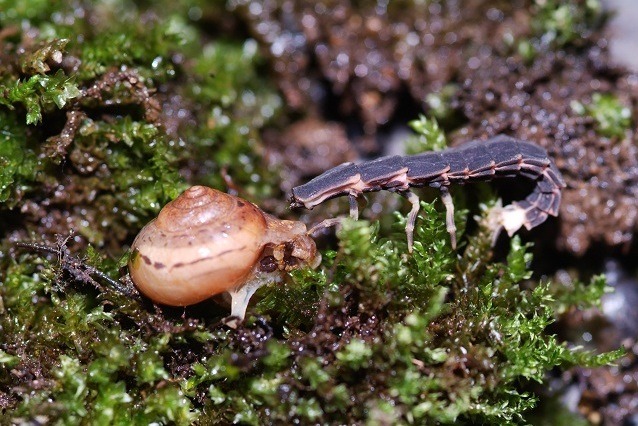 요녀석이 애반딧불이 유충입니다. 지금 우렁이를 잡아 먹으려 하는군요~~