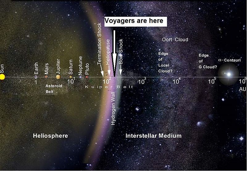 태양권의 외곽 구역에 해당하는 부분이 헬리오시스 입니다. 보이저호는 태양으로부터 약 140억 킬로미터 (대략 87억 마일) 멀리 나아가 이미 헬리오시스에 진입했고 이 거리는 태양과 지구간 거리의 약 94배에 해당하는 거리이다.
