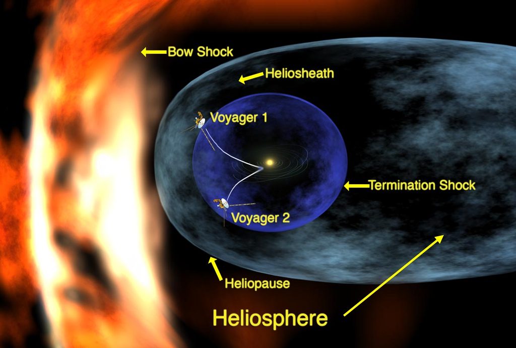 강물의 흐름을 갈라지게 하는 바위처럼 태양권은 성간 공간에 바우 샥이라 부르는 충격파를 형성한다.