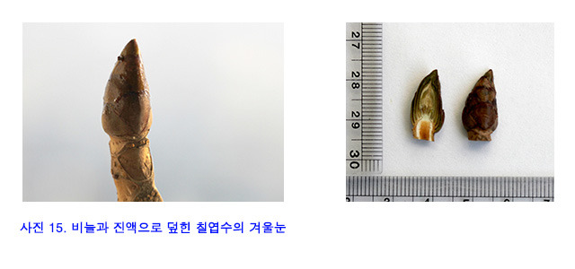 사진 겨울나기 15 비늘과 진액으로 덮인 칠엽수의 겨울눈