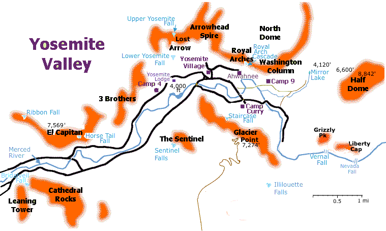 요세미티 밸리의 동쪽에 위치하고 있다. 요세미티에서 가장 알려진 이 바위는 요세미티 밸리에서 4,737 피트(1,444 m)
