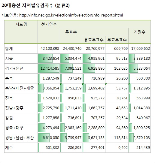 20 대총선 지역별 유권자 수