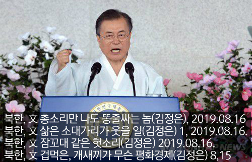 <지금 이 시각에도 남조선에서 우리를 반대하는 합동군사연습이 한창 진행되고 있는 때에 대화분위기니, 평화경제니, 평화체제니 하는 말을 과연 무슨 체면에 내뱉는가 하는 것이다…북쪽에서 사냥총소리만 나도 똥줄을 갈기는 주제에 애써 의연함을 연출하며 북조선이 핵이 아닌 경제와 번영을 선택할 수 있도록 하겠다고 력설하는 모습을 보면 겁에 잔뜩 질린 것이 력력하다.>