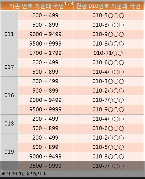 010번호 국번변경 규칙(011, 016, 017, 018, 019)