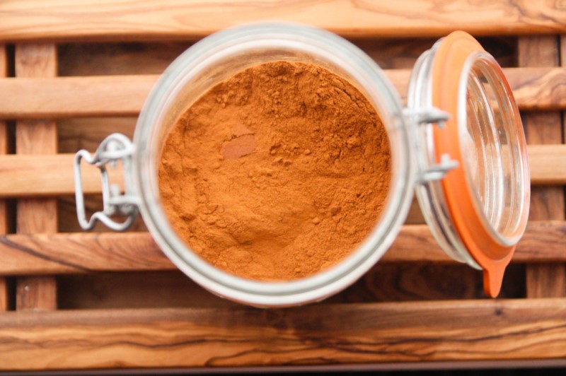 사진 계피(桂皮)가루 적당한 용기에 계피가루를 300g 넣는다