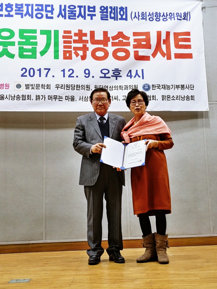서금희 천보문화포럼 공동회장과 즐거운 눈빛 안희영 대표의 시낭송