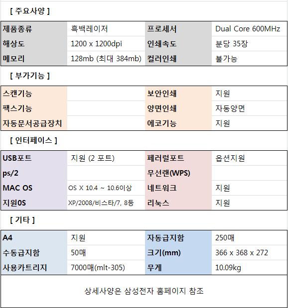 토너카트리지는 양이 아주 많습니다. mlt-305s 토너는 7,000매를 출력하고