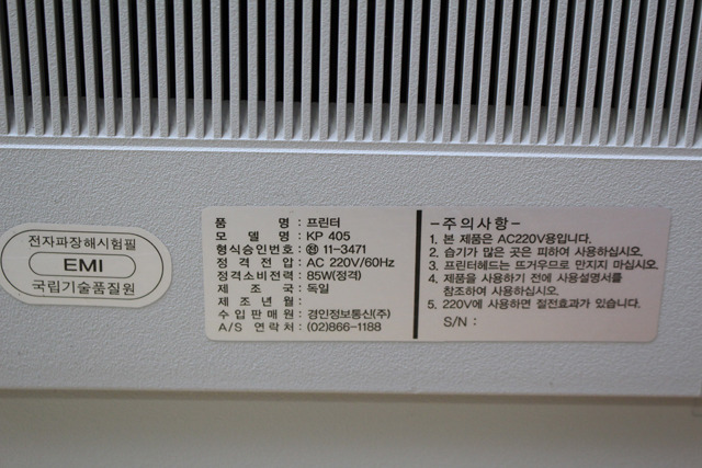 패러럴 포트와 시리얼 포트를 지원하며, 전면 급지 방식으로 그만큼 용지걸림