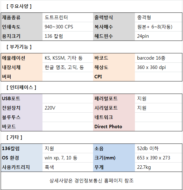 경인정보통신 136칼럼 도트프린터 KP-405 입니다.
