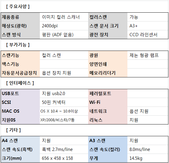 A3 풀 사이즈와 사진, 문서를 스캔할 수 있으며