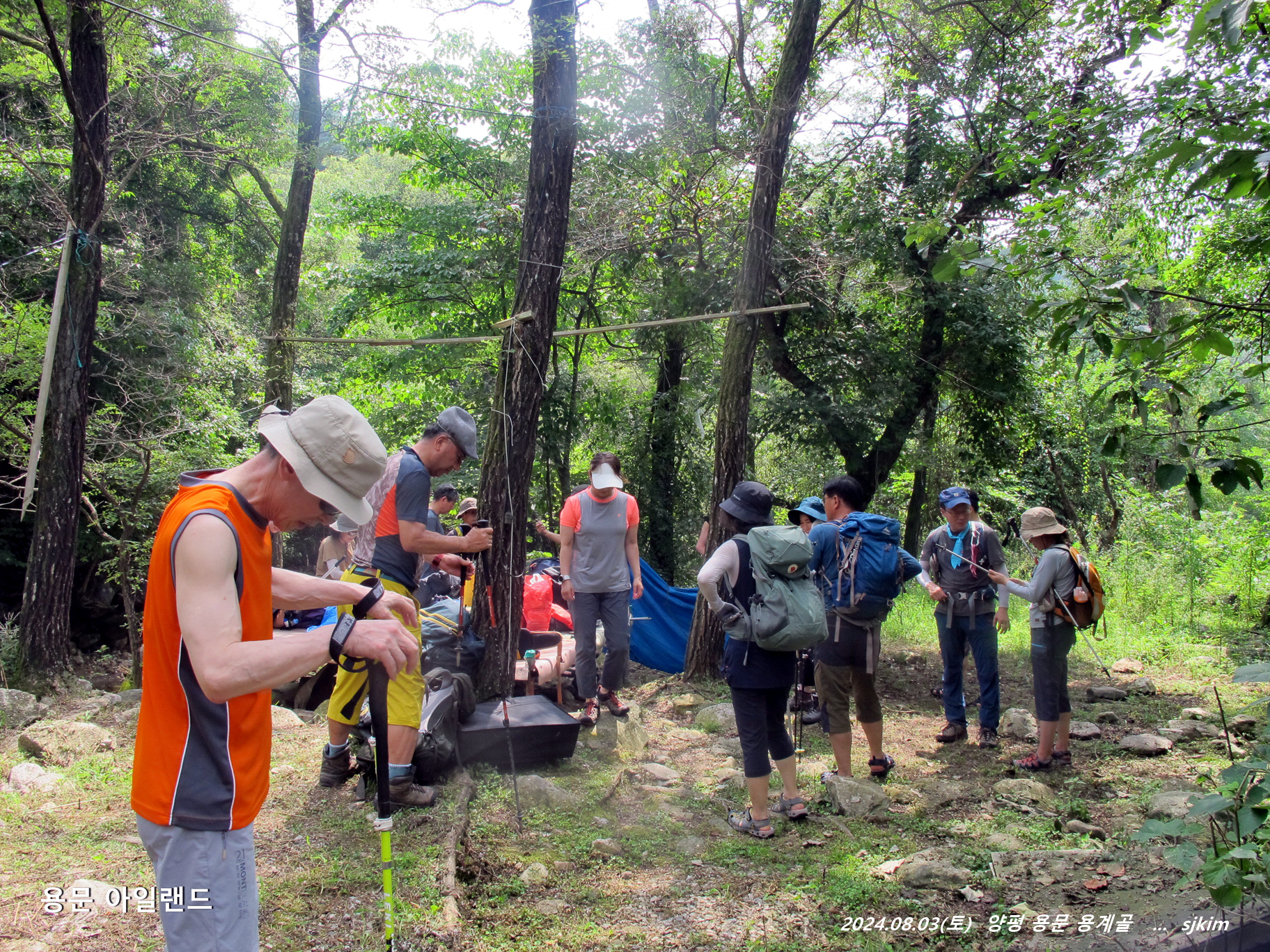 낭만 팀이 미리 섭외한 비처(용문천 아일랜드)는 오랜만에 자리 함께한 반가운 산우들로 북적입니다.